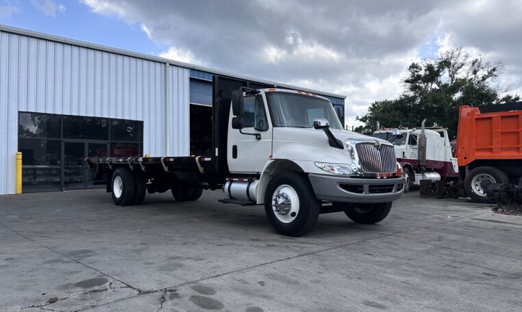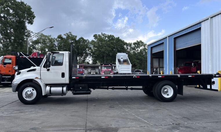 2006 International 4300 Flatbed Truck FOR SALE! Rebuilt International DT466 Engine, Allison Automatic Transmission, 24 Ft Flatbed with Moffett Hookup & All New 11R 22.5 Tires